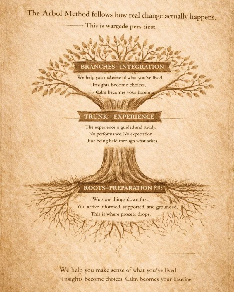 • Integration is an ongoing process. The most important phase is the weeks immediately following ceremony, which is why The Arbol Method includes structured post-retreat support. Healing unfolds over time as insights are applied to daily life.